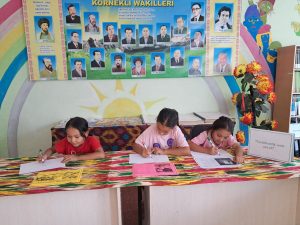 Qanlıkól rayonı Málimleme kitapxana orayiniń oqiw zalinda