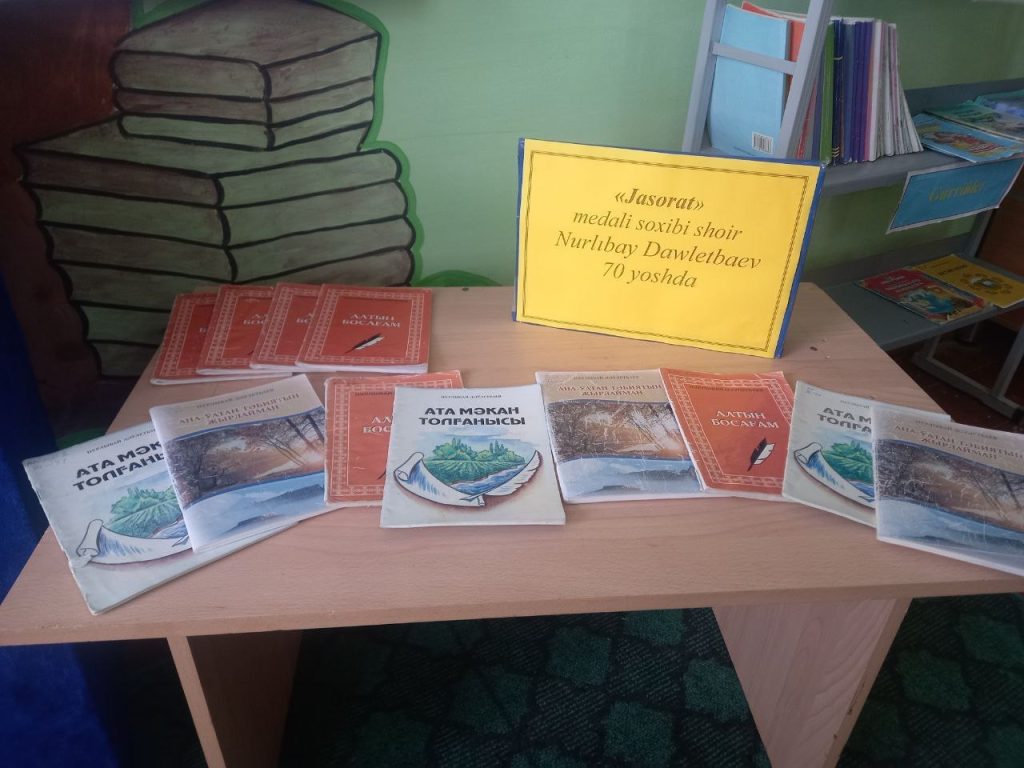 «INFOLIB OʻZBEKISTON-2024″ XIII Milliy axborot-kutubxona haftaligi doirasida 2024-yil 23-oktyabr kuni Qanlikól tumani axborot-kutubxona haftaligi Maktabgacha va maktab tálim tasarrufidagi 19-sonli maktabning oʻquvchi-yoshlari bilan birgalikda» Jasorat» medal sohibi shoir Nurlibay Davletbaevning 70 yilligiga bagʻishlab adabiy kecha tashkillashtirildi. Bunda óquvchi-yoshlar faol ishtirok etdi. Kechada shoirning qálamiga mansuv sherlardan hirgoya etildi.Shoir kitoblaridan kórgazma tashkillashtirildi. Koʻrgazmadan urin olgan shoirning kitoblardan tadbir ishtirokchilariga maʼlumot berildi.
